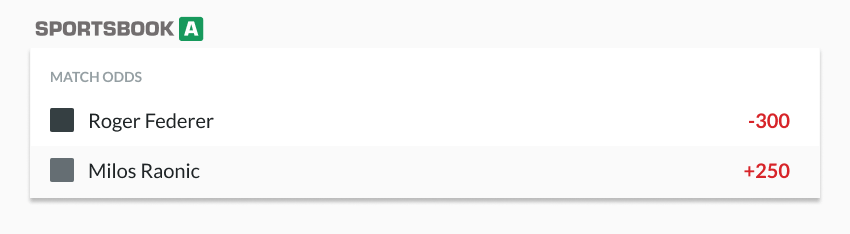 If you take a close look at those lines, it becomes clear that if you like Federer, it’s better to bet him at Sportsbook B. On the other hand, if you like Raonic, it’s better to bet him at Sportsbook A.
