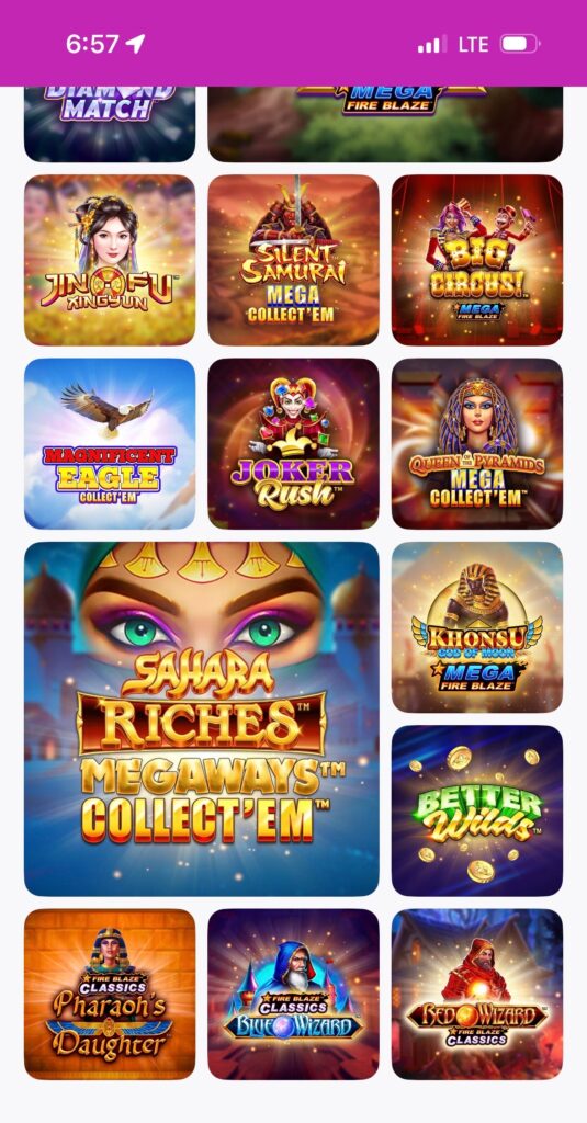Promoted as “real money games” users pick through about two dozen titles to play. These titles are actual real online slot games that are available at other operators where online casinos are legal.