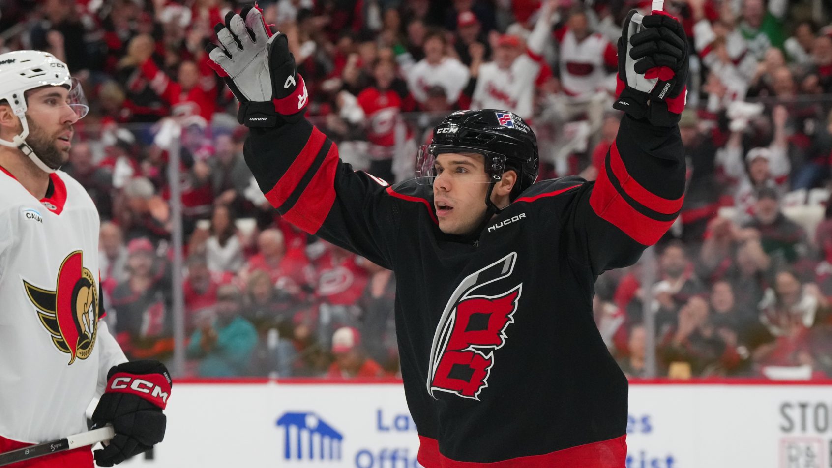The depth scoring backed Andersen up. Eight different players found the back of the net against Ottawa. Logan Stankoven scored four goals and was the breakout star, while Taylor Hall led the team with seven points (2G, 5A) and a +5 rating. Sebastian Aho added three goals, and the Canes did all of this without much from Andrei Svechnikov, who went pointless despite a 70-point regular season.