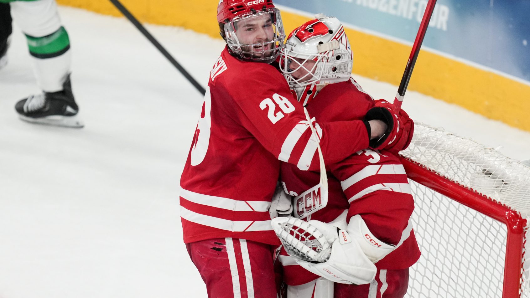 Daniel Hauser has been every bit as good for Wisconsin in the tournament. The Badgers’ freshman has allowed just five total goals across three NCAA tournament games and made 21 saves against North Dakota, including a sprawling glove save through traffic with two minutes left to preserve the lead.